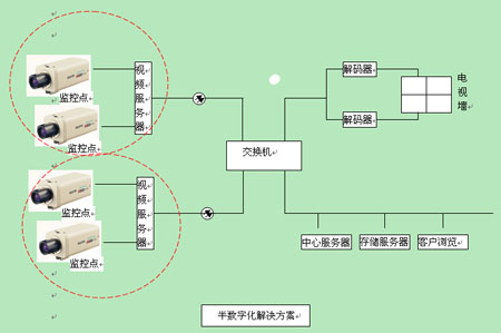 对比以上3种解决方案:全模拟解决方案中最不方便的就是施工难度大,可扩展性差,造价高。而半数字化方案中图像清晰度就是一个很大的问题,不管你前端多少像素的摄像机一旦被压缩为D1(现市面上最常用的)效果后,清晰度也会大打折扣。
