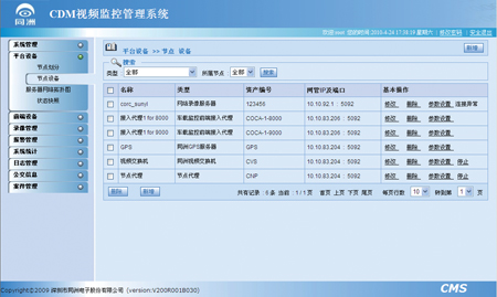 深圳市同洲电子股份有限公司提供的CDM(Coship Digital Matrix)是专为车载视频监控开发的平台软件。CDM是全系统管理中心,由中心管理服务器、节点服务器、前端接入服务器、存储服务器、媒体分发服务器、智能分析服务器、电子地图服务器及GPS服务器等组成,实现视频分发、集中存储、集中控制、业务统计、业务分析等功能。